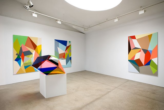 I instantly recognized Gemma Smith's bright, faceted artwork from this beautiful space. It's amazing how flat colour and simple, clean lines can have so much dimension and depth. Gazing into her pieces is like peering into an over-sized kaleidoscope.