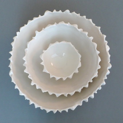 This set of three Nesting Scallop bowls caught my eye right away. Easily spit up to use individually or equally beautiful as a set where they resemble a flower opening to the light.