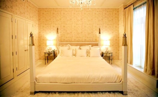The bedroom speaks of old Hollywood glamour, all in soft golds and plush upholstery. For some reason I can't really imagine Chris Martin in this room, but I could see Gwyneth being drawn to the classic luxurious. The intricate carved, gilded cupboards add a bit of exotic Eastern flair.